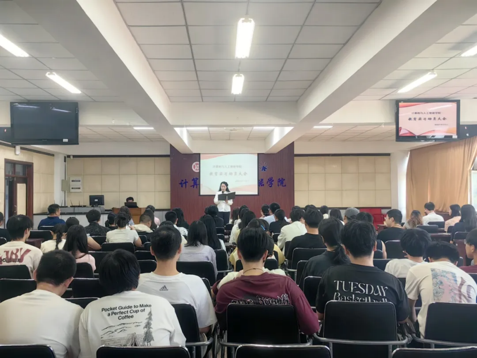 为推动师范生将基础理论、专业知识与实践技能深度融合,提升独立教学及教育研究能力,提前适应教学岗位,2025年9月11日上午9时,计算机与人工智能学院于二教B602举行教育实习动员大会。出席本次动员大会的有我院党委书记张丽杰,教学副院长牛盼盼,党委副书记兼2022级本科生辅导员信润海,教育实习指导教师孙美乔、张凤梅、嵇敏、孙芳、石慧、郑宏亮、林禹竹及全体2022级计算机科学与技术(师范)专业本科生。