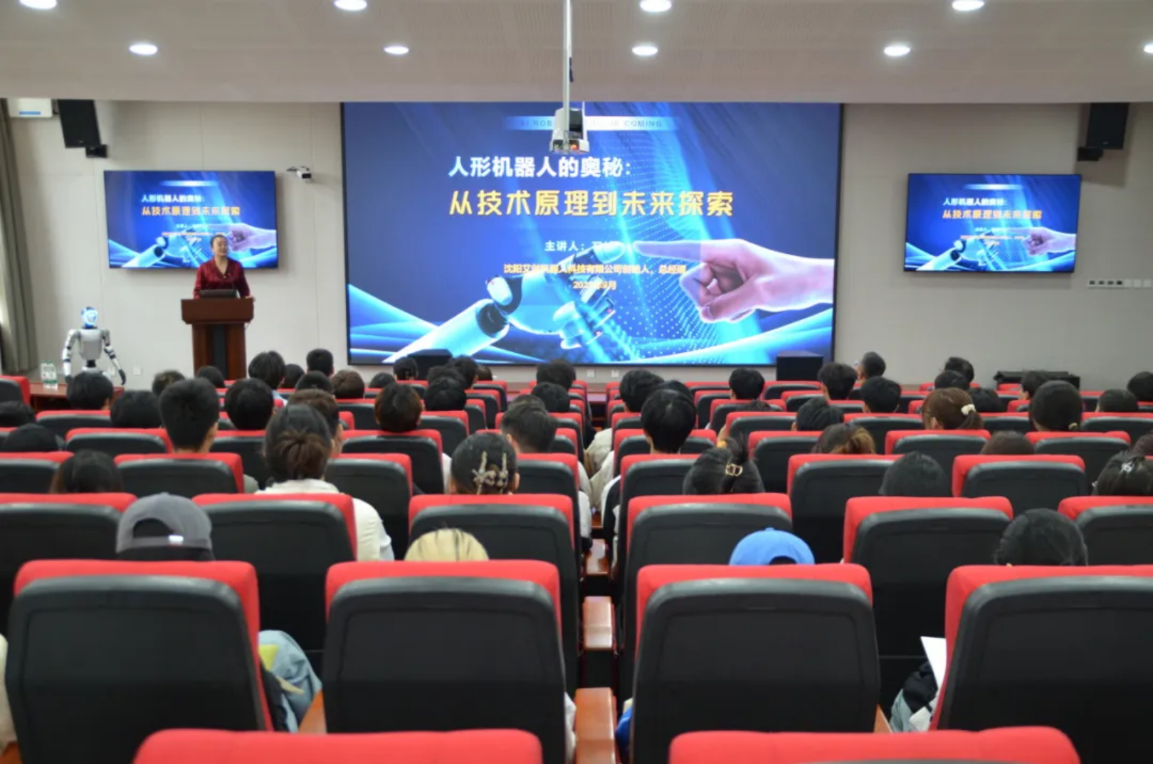 2025年9月19日14时,计算机与人工智能学院于实训楼109室成功举办“人形机器人的奥秘:从技术原理到未来探索”主题讲座。出席本次讲座的有学院党委书记张丽杰老师,学院党委副书记兼2022级辅导员信润海老师,学院团委书记兼2025级辅导员于祥昀老师,2023级辅导员王运华老师,2024级辅导员赵文靓老师,我院教师韩丽老师、崔晓松老师,沈阳艾创机器人科技有限公司创始人、总经理石林,以及2023级、2024级全体人工智能专业本科生。本次讲座由石林主讲。