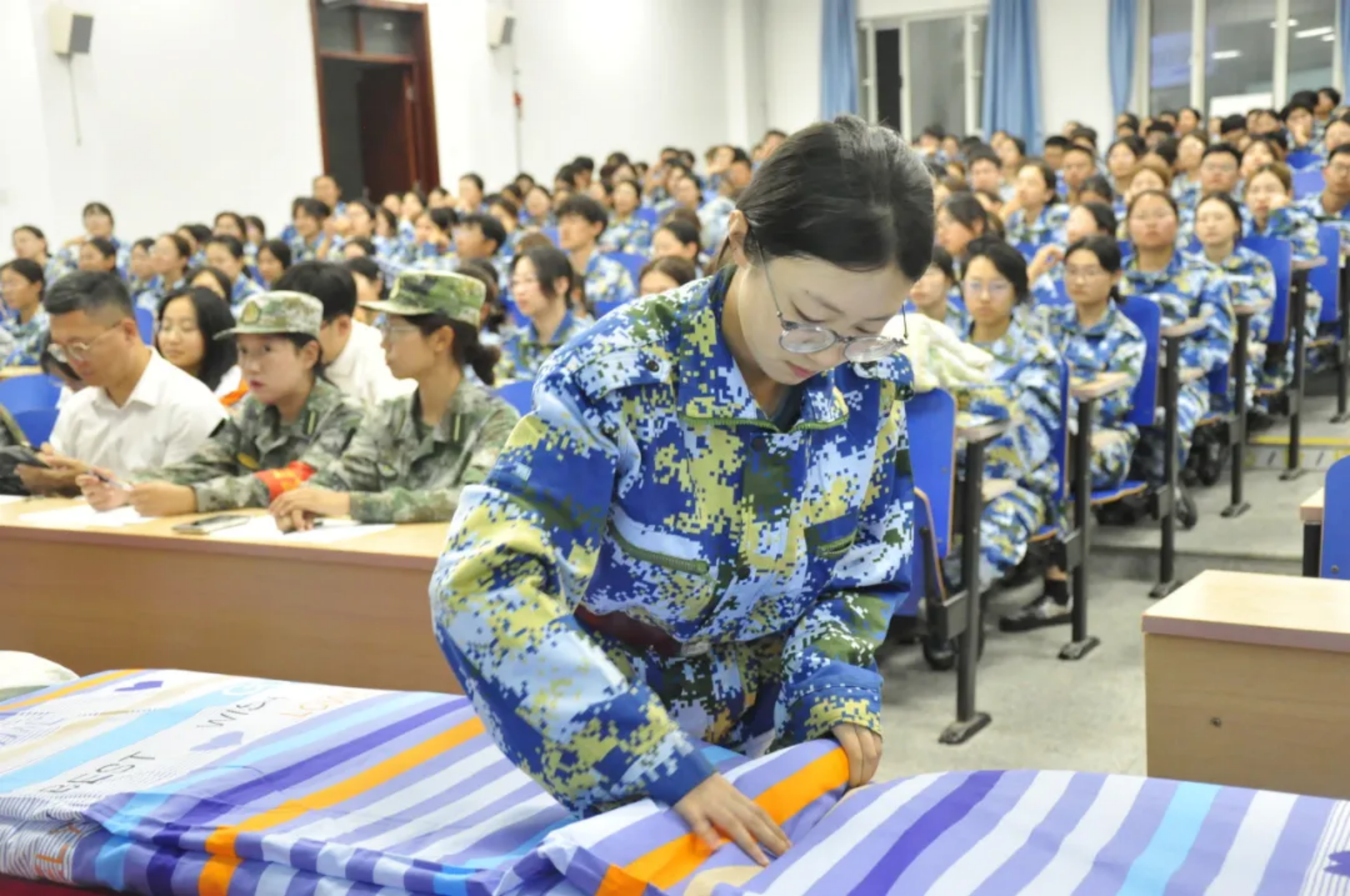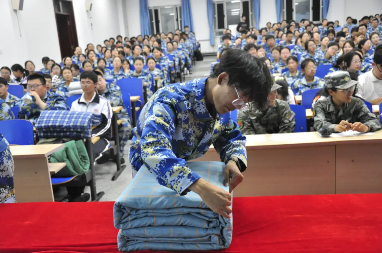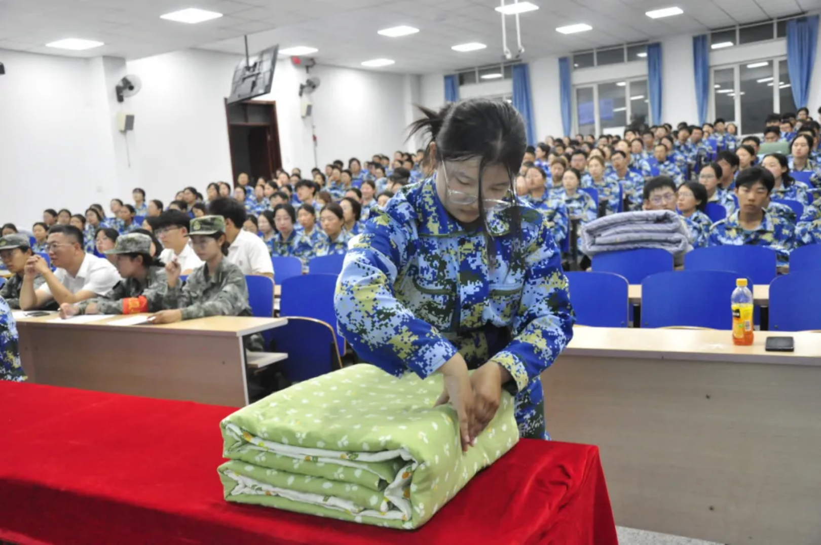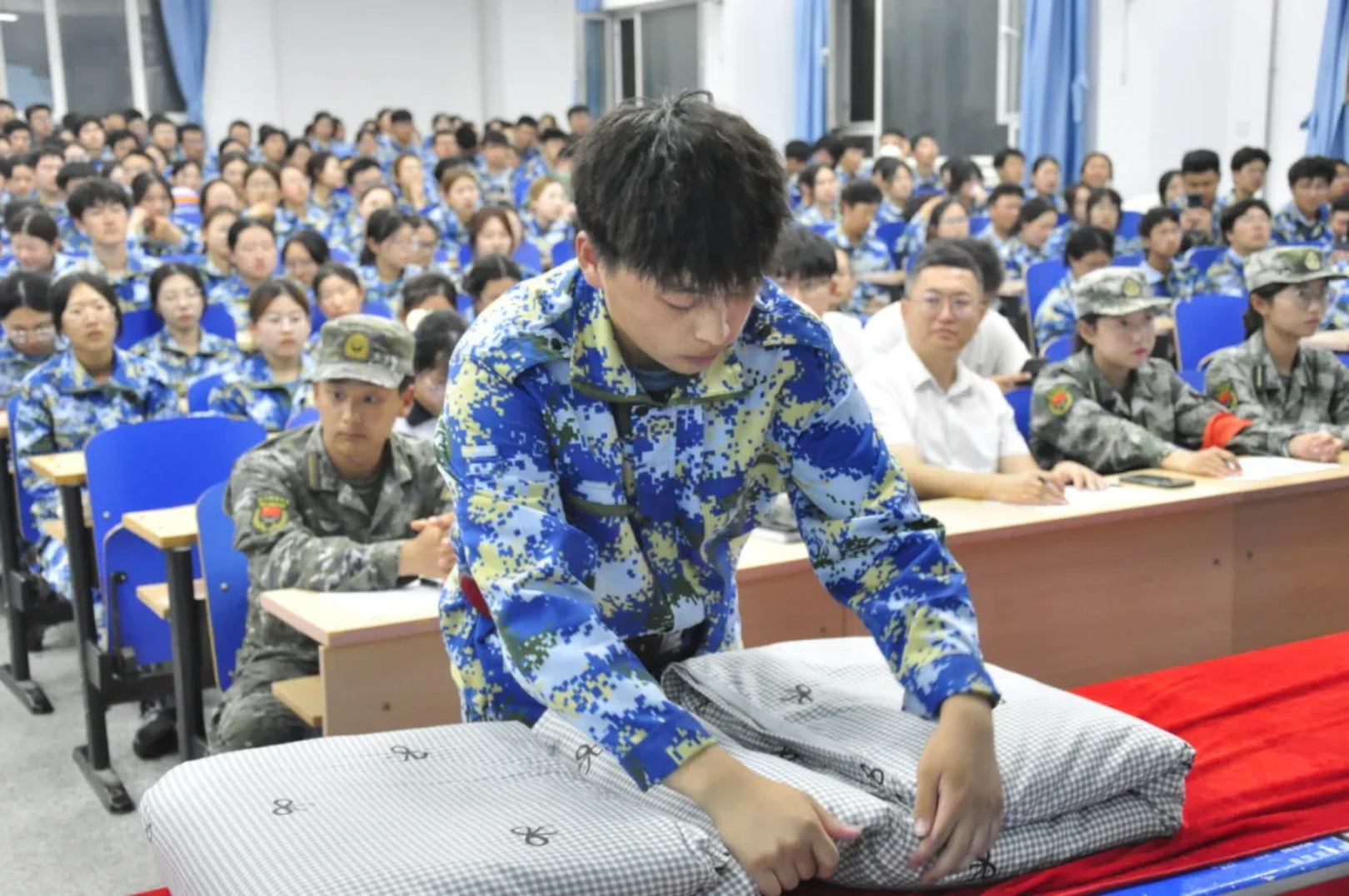 为切实提升我院学子修养内涵,引导同学们营造富有特色的寝室文化环境,同时集中展现新生集体昂扬向上的精神风貌与规范整洁的居住环境,计算机与人工智能学院于9月22日18时30分于一教105举办“被”显匠心,“叠”出风华——新生叠被子大赛。出席本次大赛的嘉宾有学院团委书记兼2025级辅导员于祥昀,军训十八连全体教官,团委学生会代表以及2025级全体本科生。本次大赛由罗文彤和张麒浩主持。