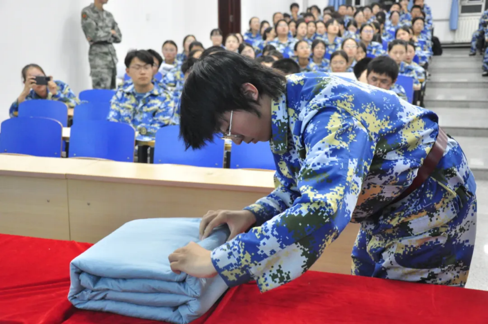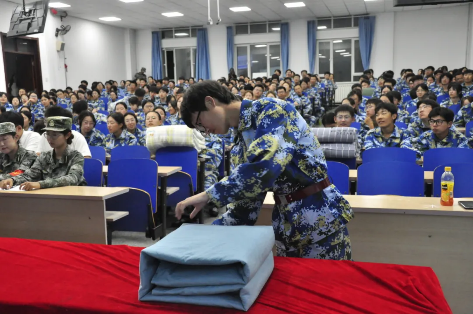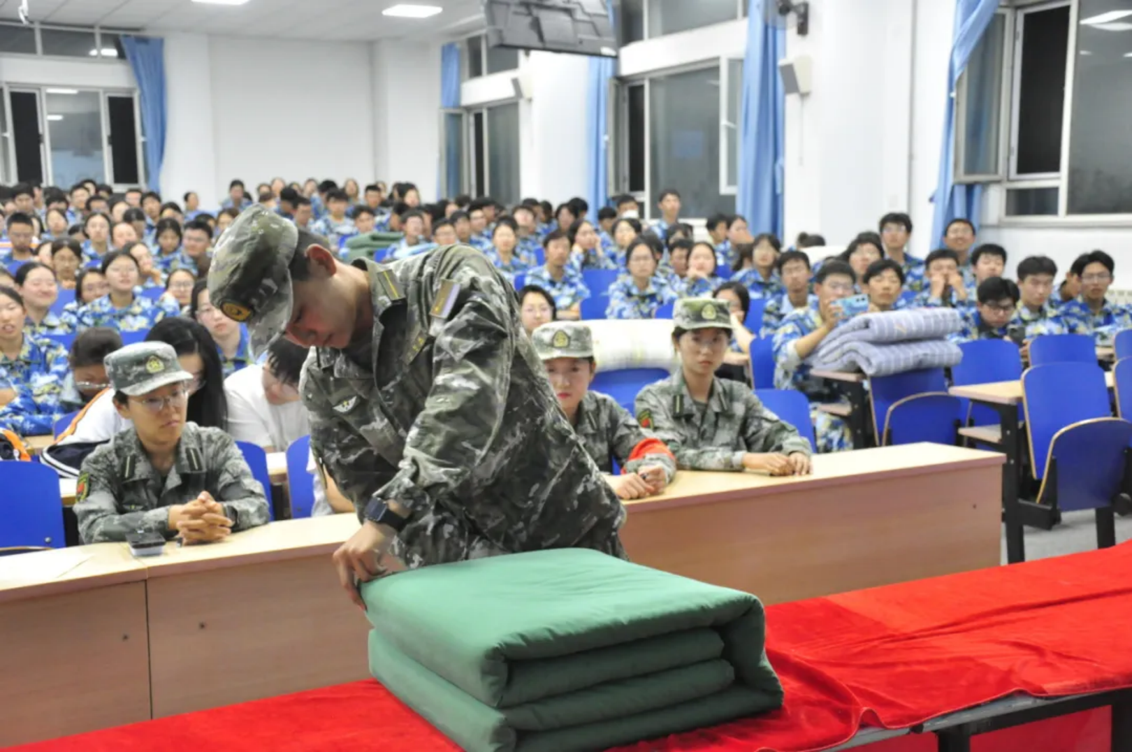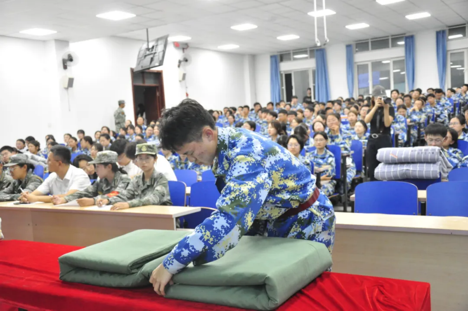 小组赛结束,刁柯诚教官向大家展示“豆腐块”的正确叠法,演示了“三分叠,七分修”的过程,同时为大家讲解了评分标准,同学们更加明确地认识到了如何叠出一个标准的“豆腐块”。