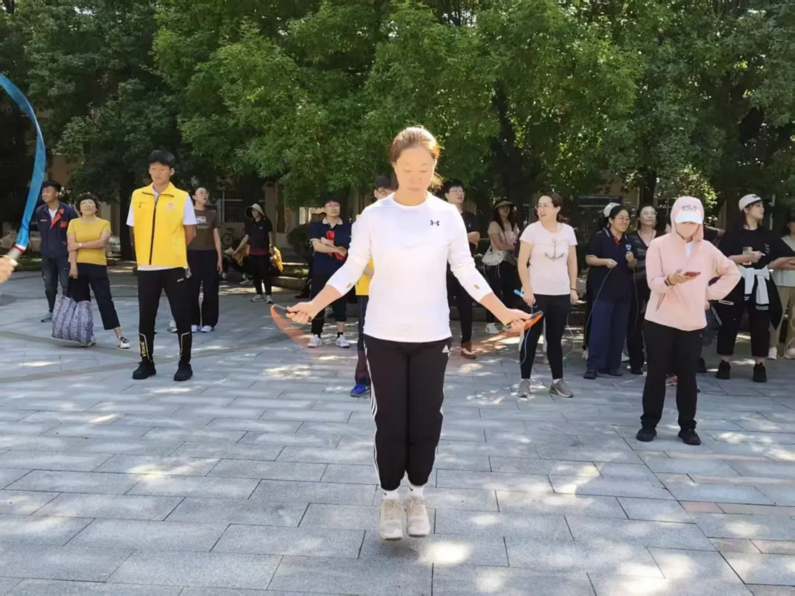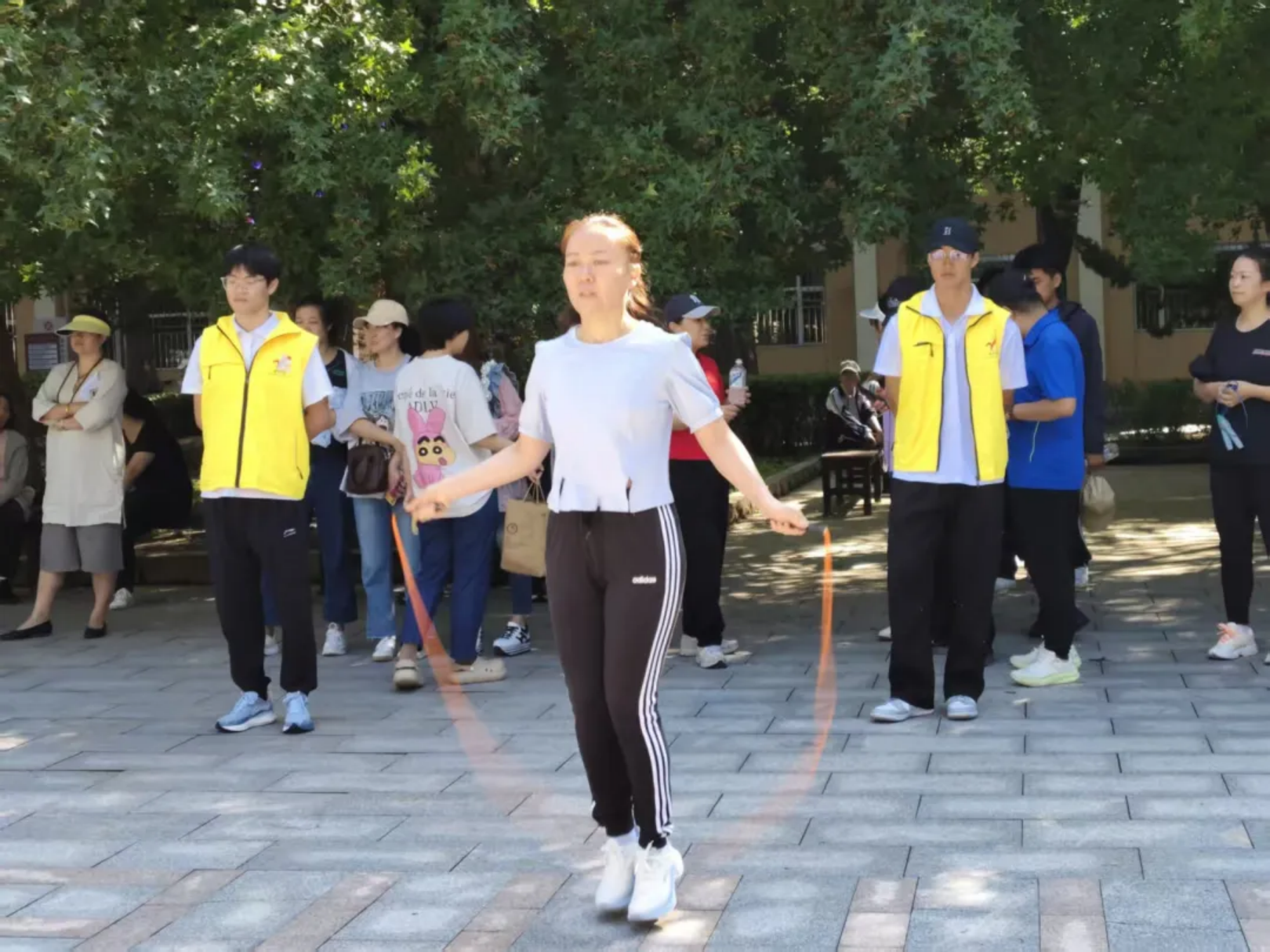 单绳在脚下翻飞!甩动的是岁月沉淀的稳,跳跃的是奋斗张扬的劲,秒表滴答里,每一次腾跃都藏着突破自我的信念与对卓越的追求,我院教师们手腕轻转,跳出干脆利落的赛场姿态!