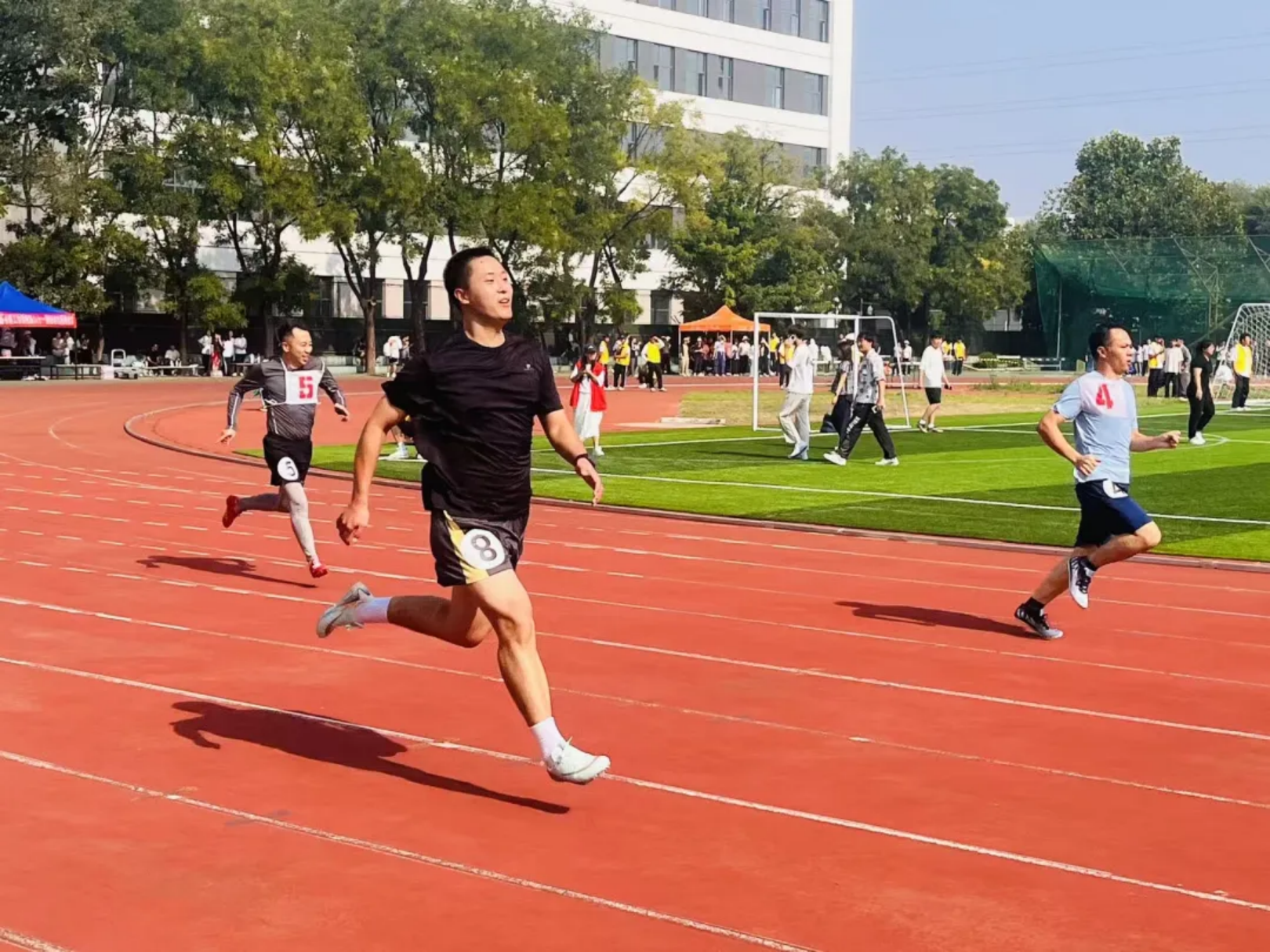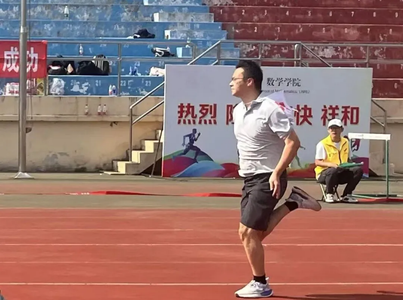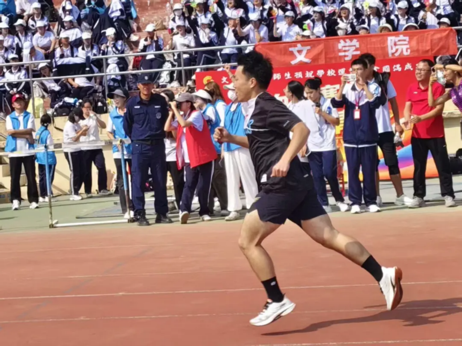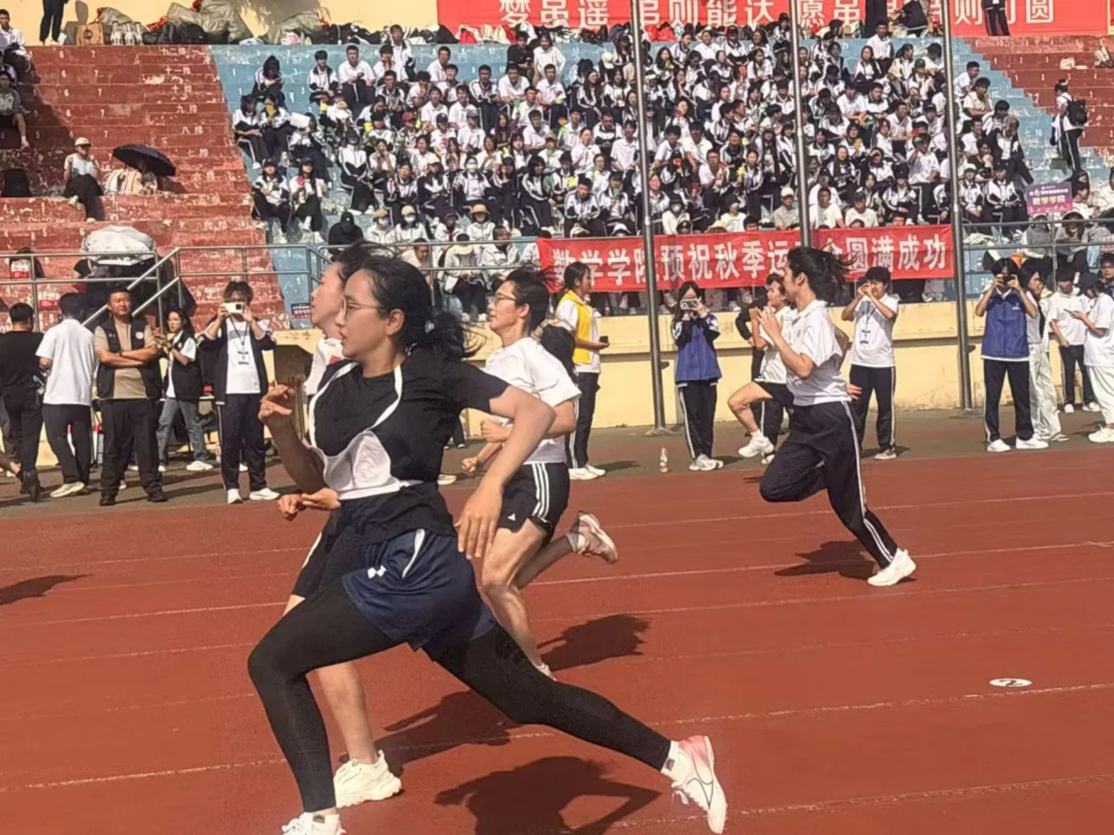 风在耳边呼啸,呐喊在赛场回荡!教工与学子在弯道压步、直道狂奔,把“更快”的信念,跑成赛道上一束追光的轨迹!