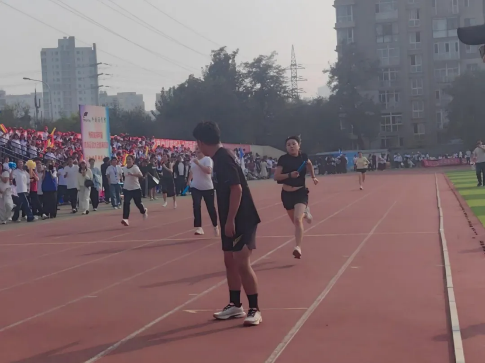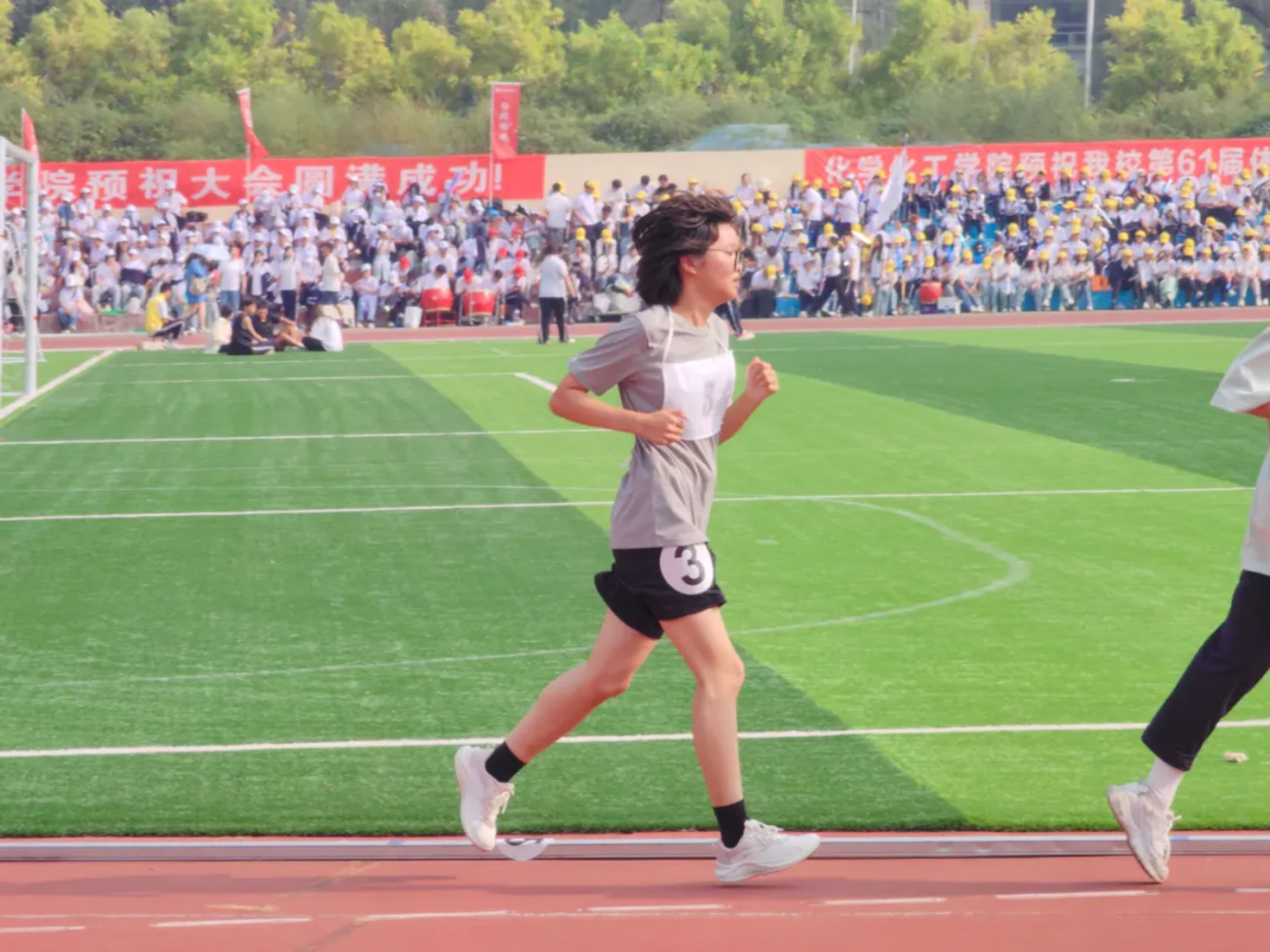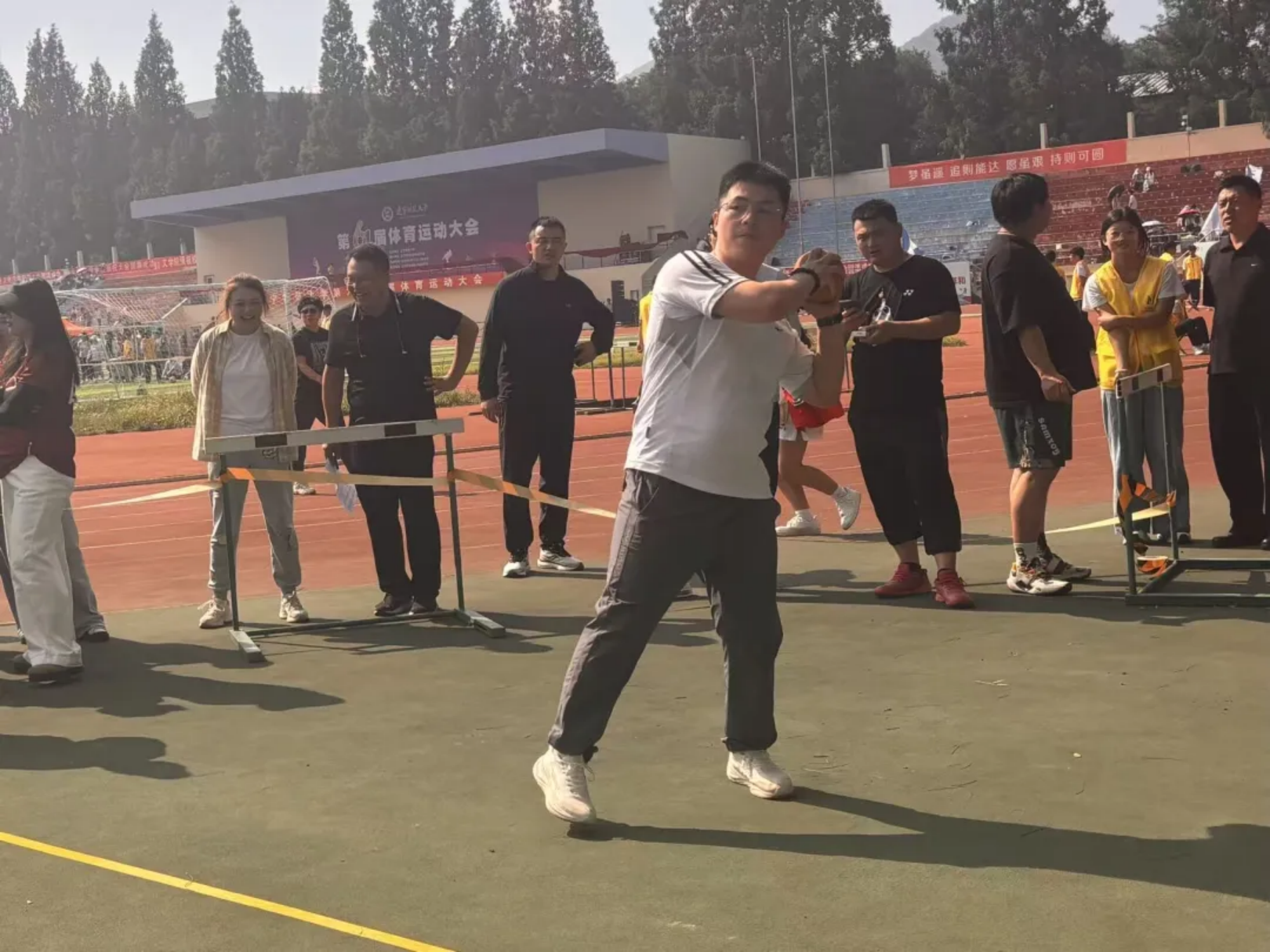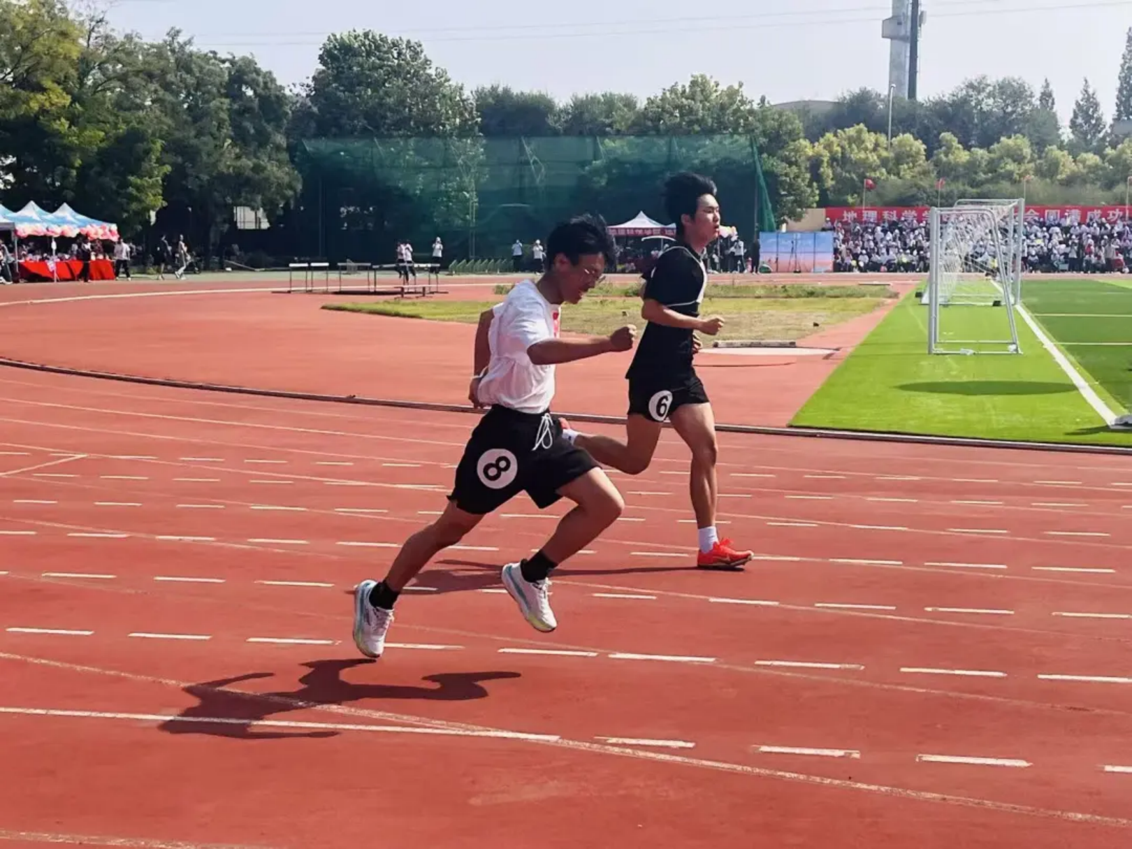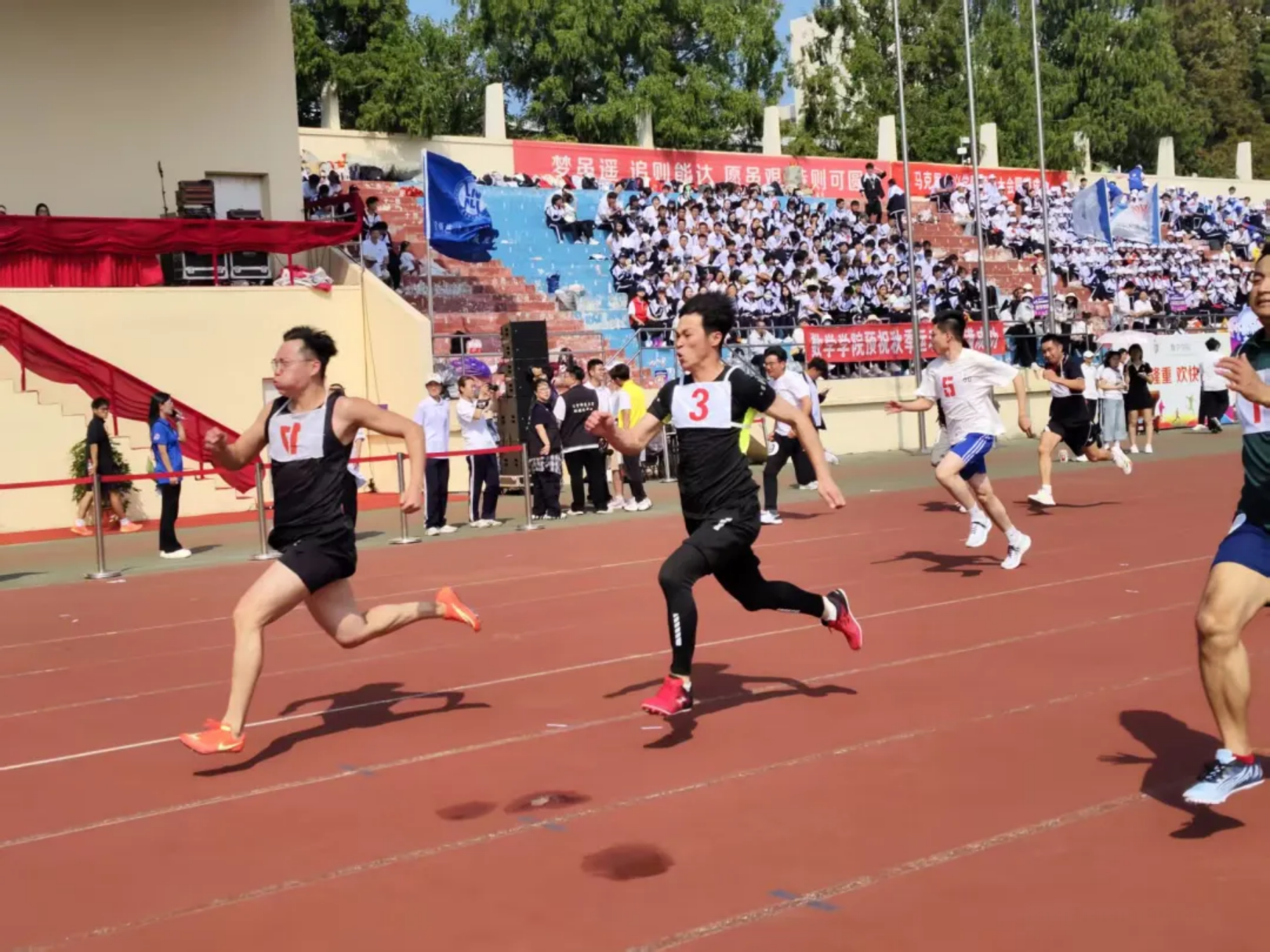 风在耳边呼啸,呐喊在赛场回荡!教工与学子在弯道压步、直道狂奔,把“更快”的信念,跑成赛道上一束追光的轨迹!