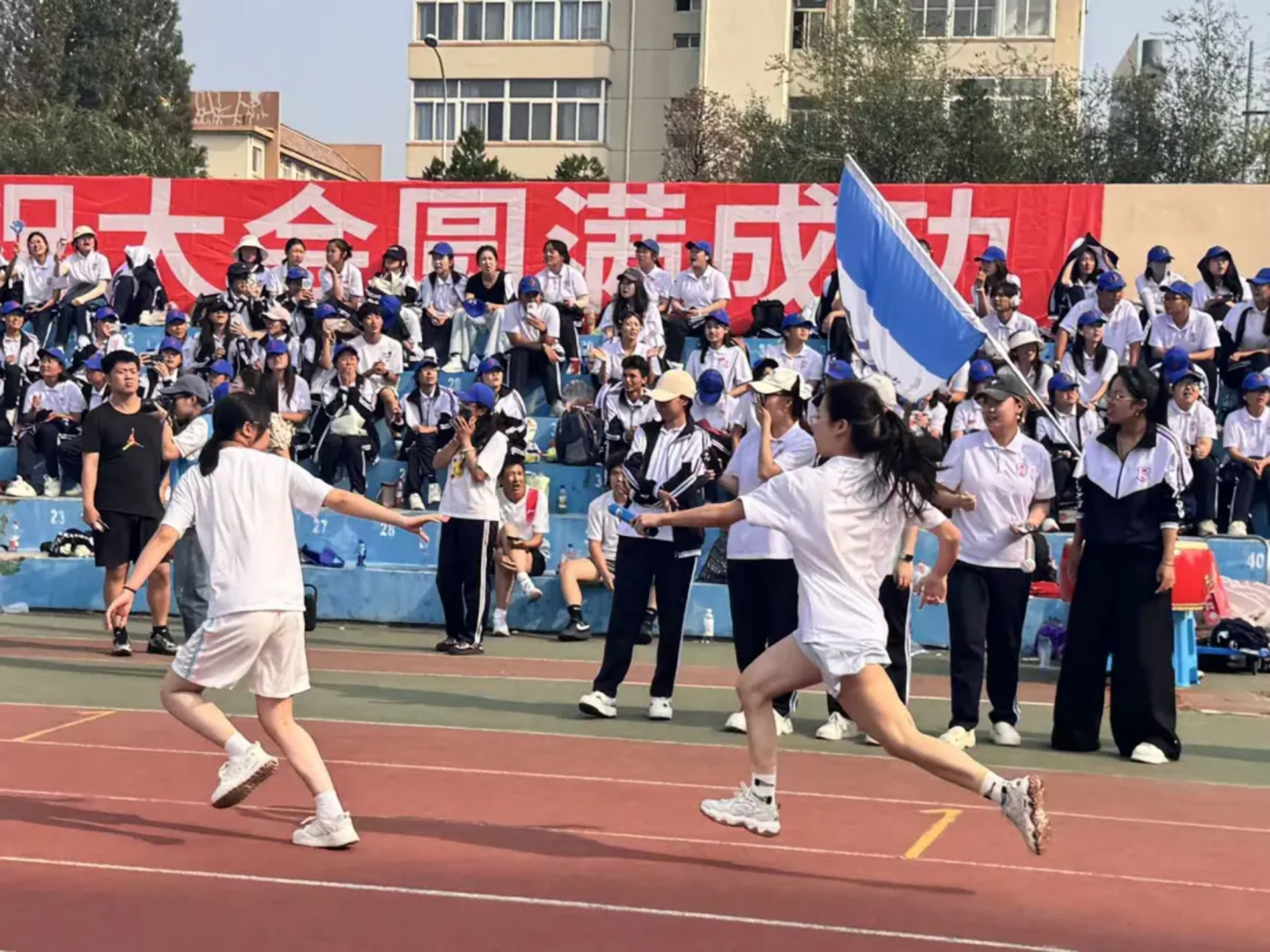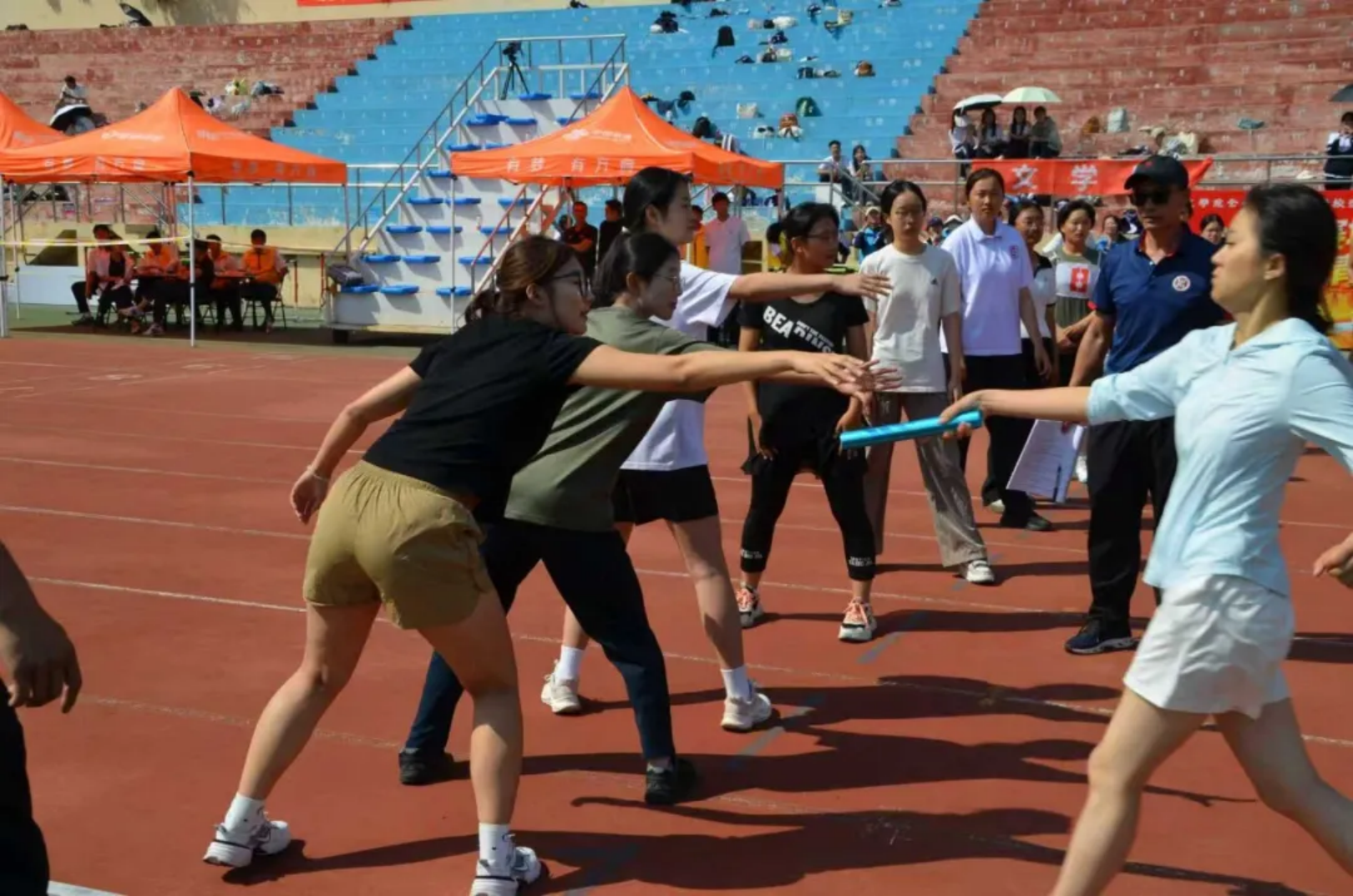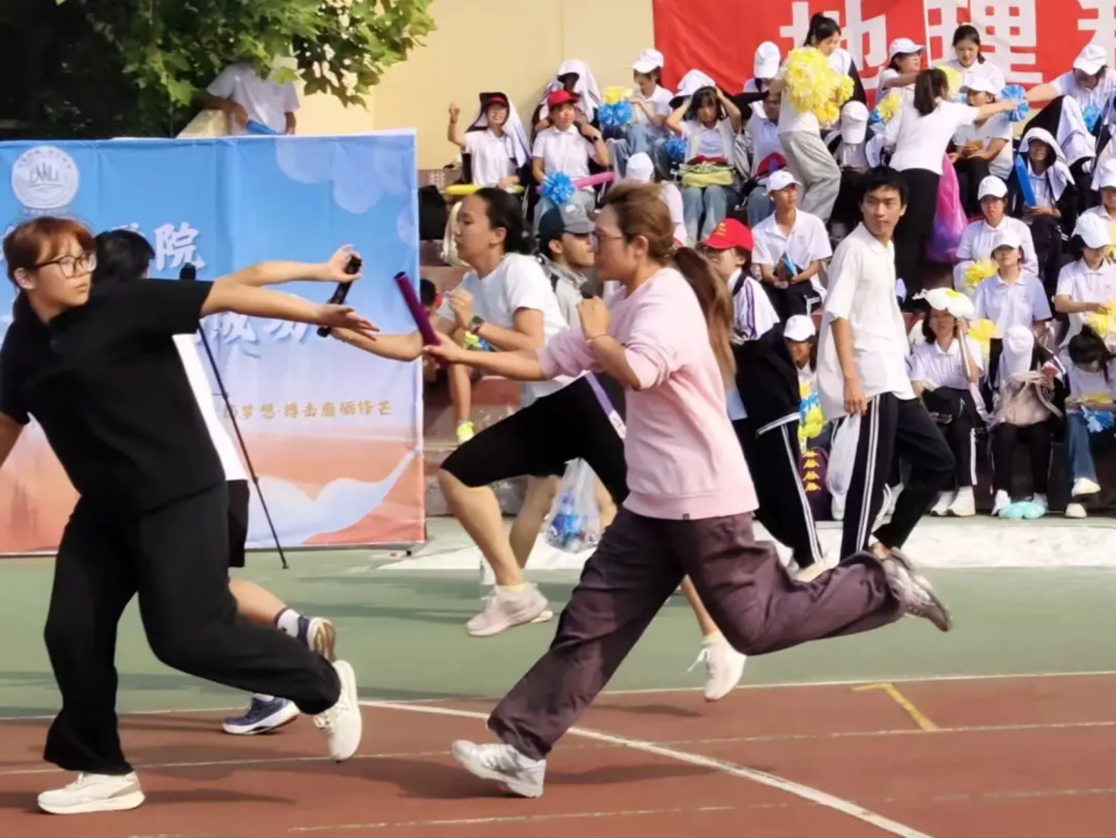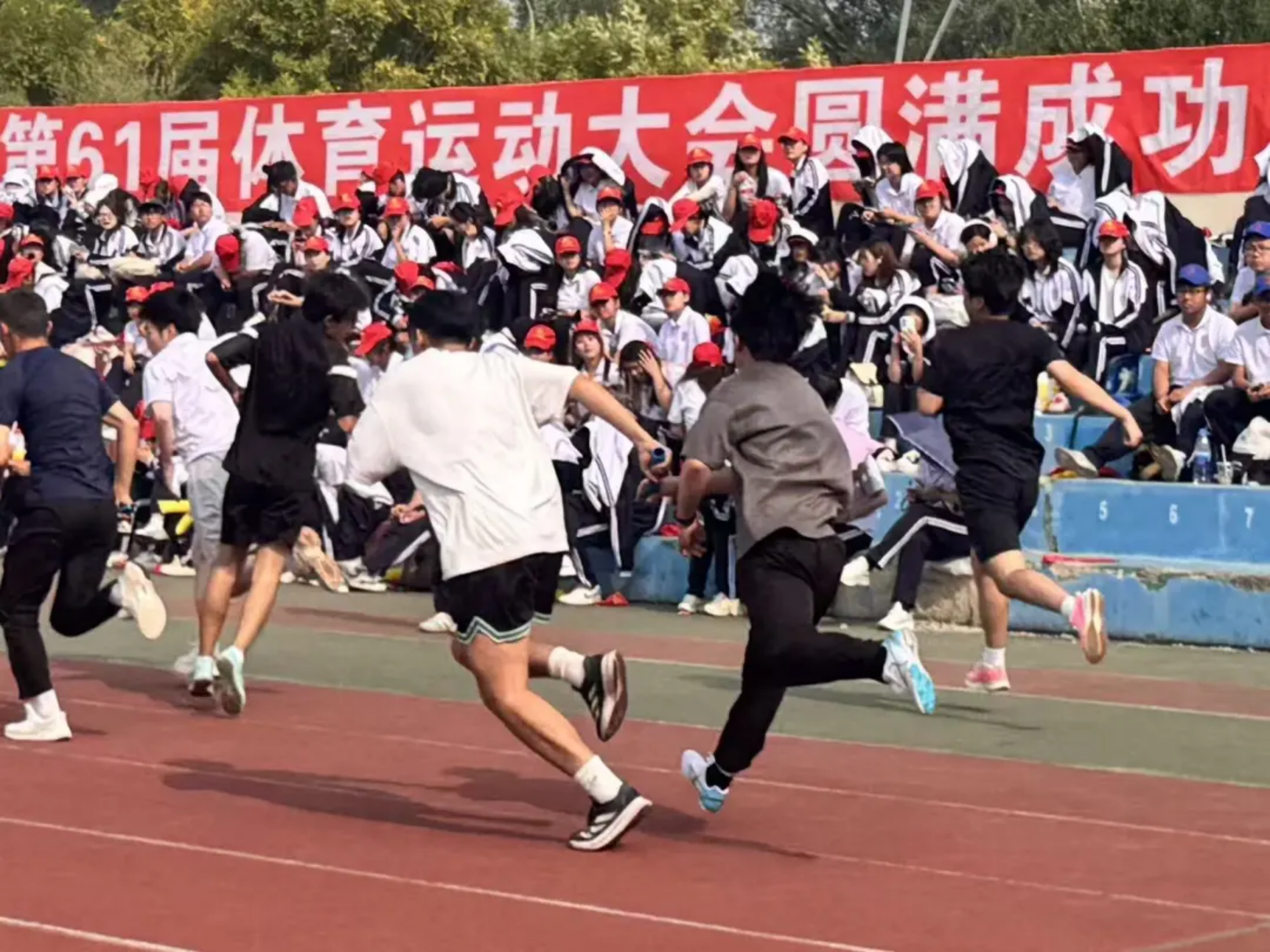 接力棒在掌心传递,温度里藏着信任与勇气!教工们的沉稳接棒,学生们的全力冲刺,让每一程奔跑都成了“我们”的故事——交接的是接力棒,续上的是并肩的情谊,奔向的是共同的胜利!
