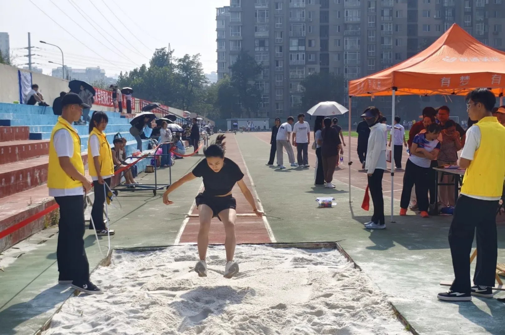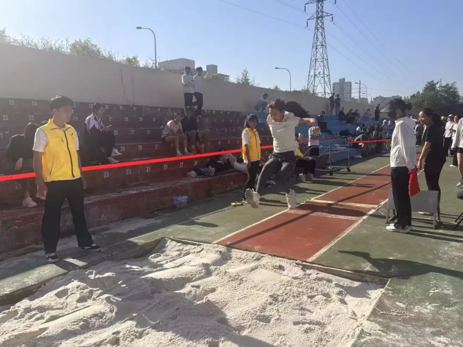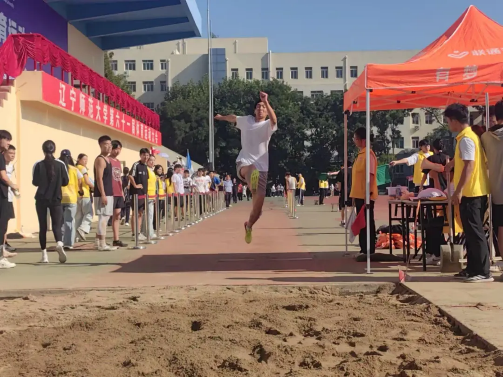 沙坑接住每一次勇敢!腾空时身体舒展如燕,在空中划出轻盈弧线,落地时沙粒顺着脚踝溅起,落地时沙粒溅起的每一粒都是勇气的勋章!远近无妨,敢突破犹豫、敢奋力一跃,就已是无可替代的胜利!
