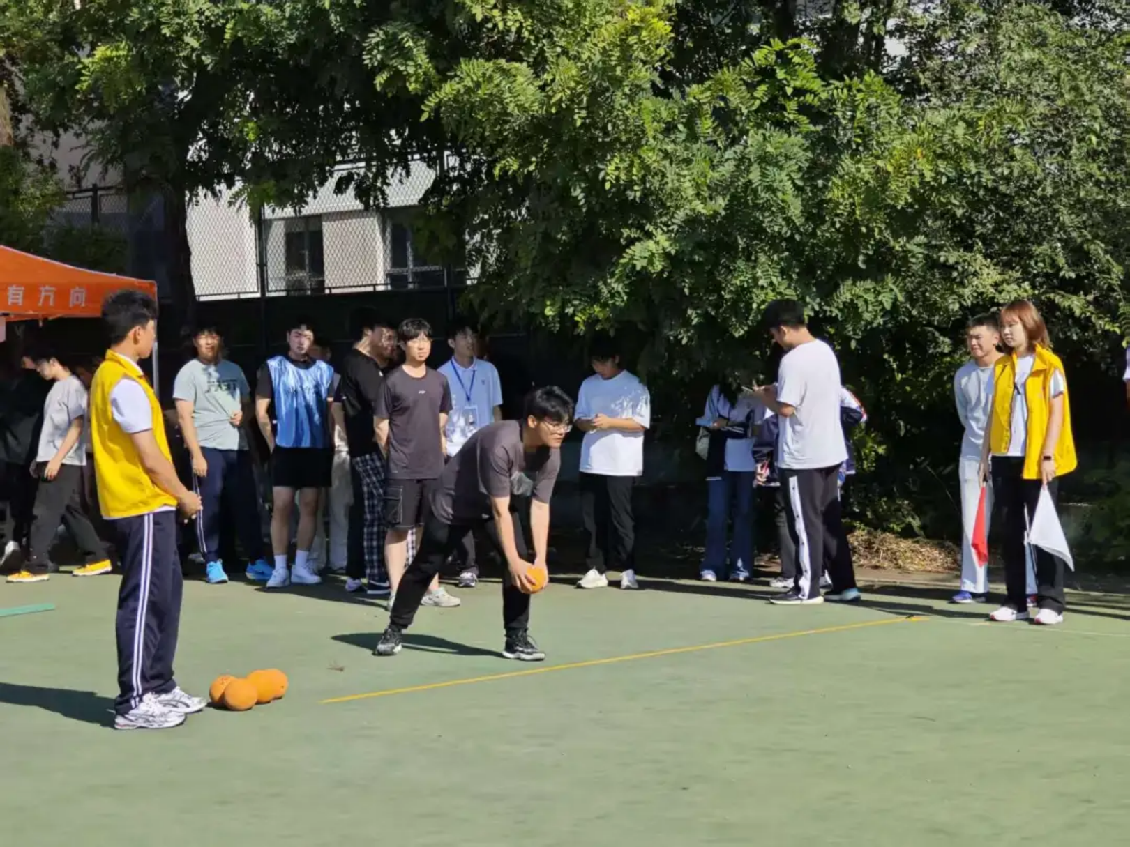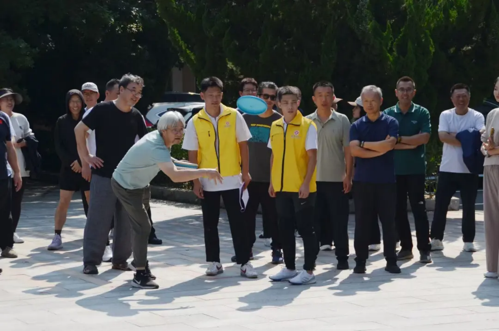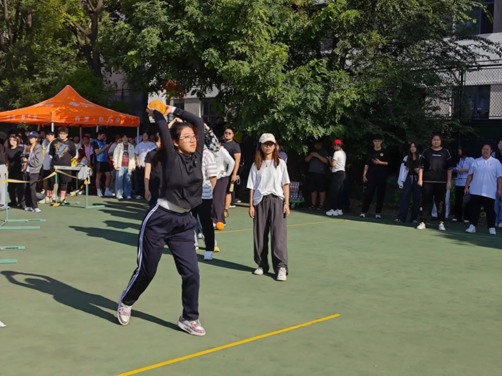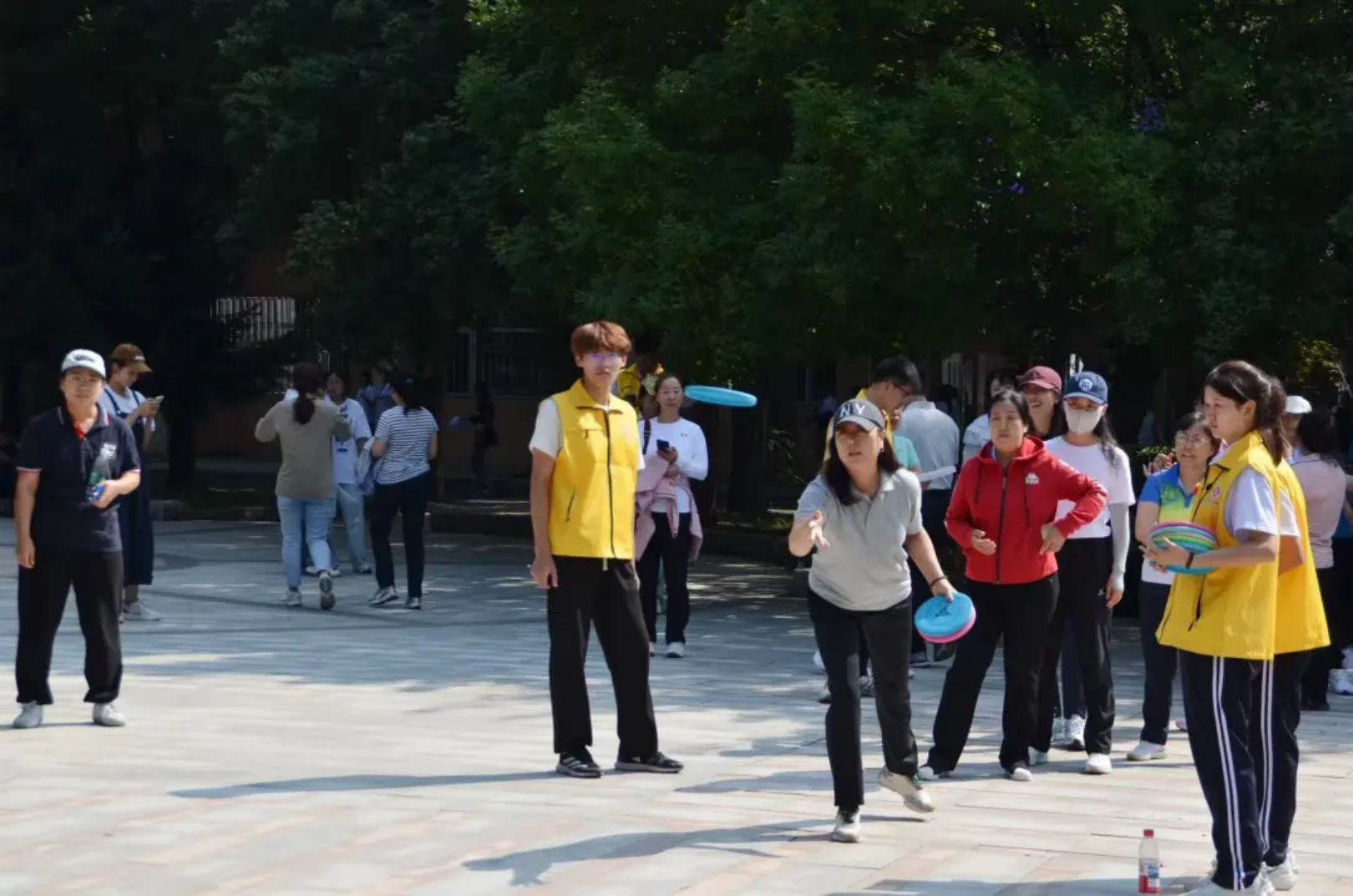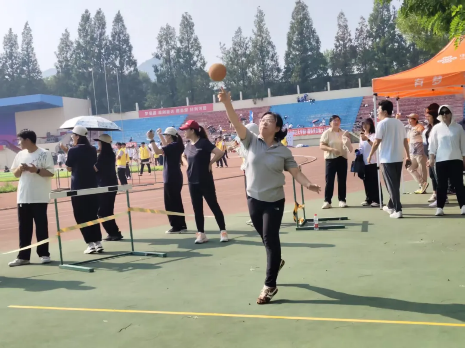 实心球划破空气,带着青春的张力落地;沙包飞向目标,载着童真的快乐弹跳;飞盘乘风盘旋,漾开勇气的潇洒弧度;足球场上,一记射门划出飒爽弧线。托球时,教工手握球拍稳稳承接,平稳的动作里藏着岁月赋予的从容。教工与学子在轻松的氛围中享受运动乐趣,力量与趣味相融,织就赛场最鲜活的图景。
