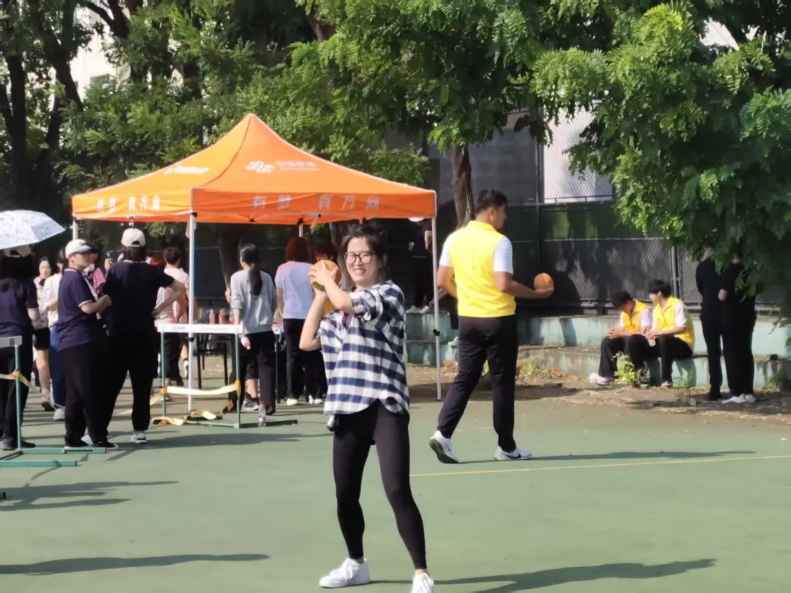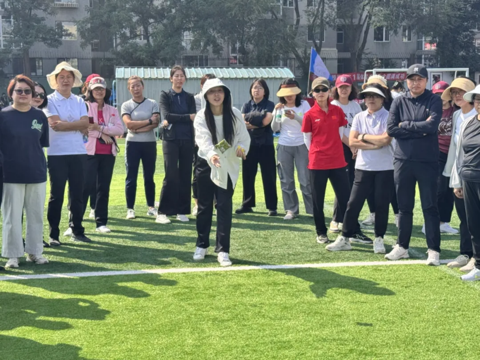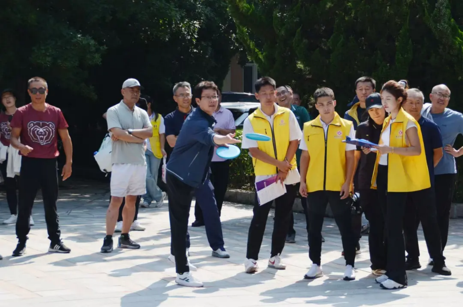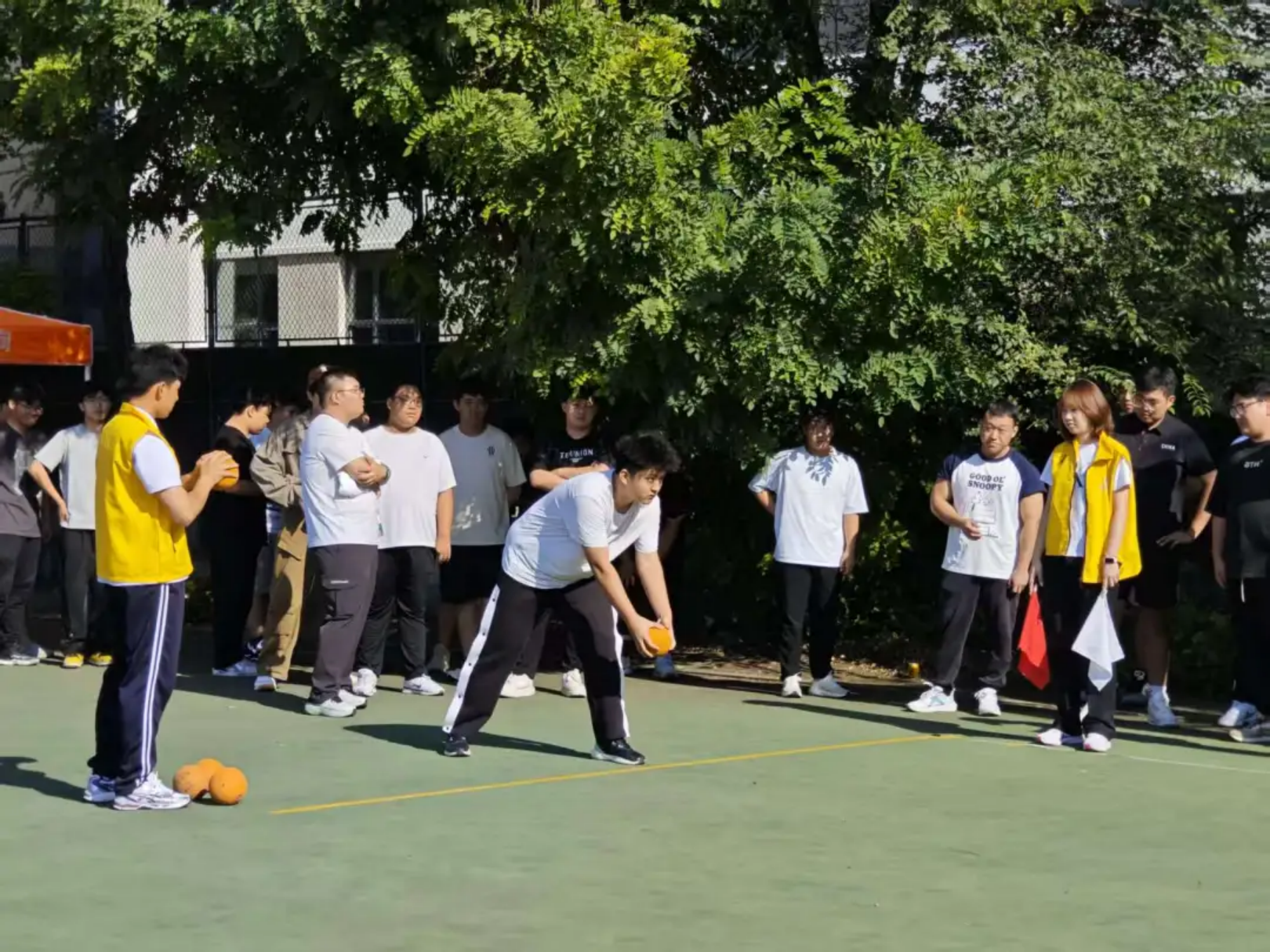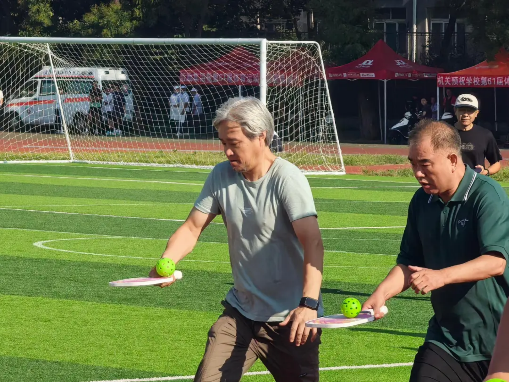 实心球划破空气,带着青春的张力落地;沙包飞向目标,载着童真的快乐弹跳;飞盘乘风盘旋,漾开勇气的潇洒弧度;足球场上,一记射门划出飒爽弧线。托球时,教工手握球拍稳稳承接,平稳的动作里藏着岁月赋予的从容。教工与学子在轻松的氛围中享受运动乐趣,力量与趣味相融,织就赛场最鲜活的图景。