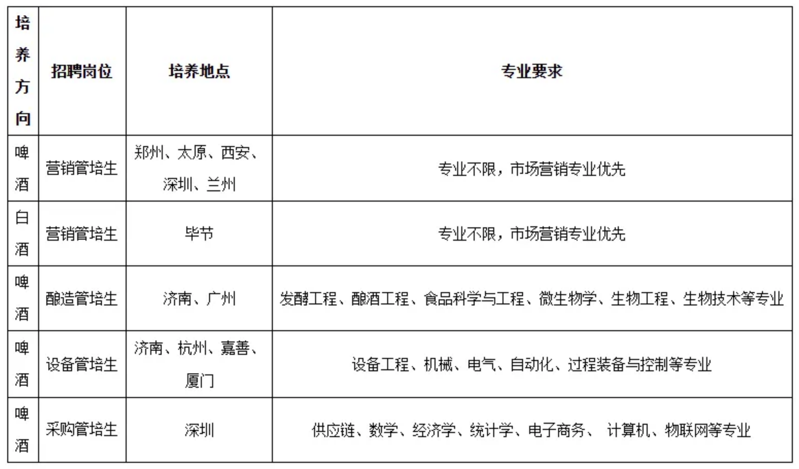 为建立完善的后备人才梯队,推动公司持续健康发展,实现年轻化、专业化、市场化、国际化的人才战略,华润啤酒管培生项目应运而生。管培生选拔主要面向优秀应届毕业生,通过体系化的培养,造就一批年轻有为、忠诚担当、德才兼备的中层管理人才后备队伍。