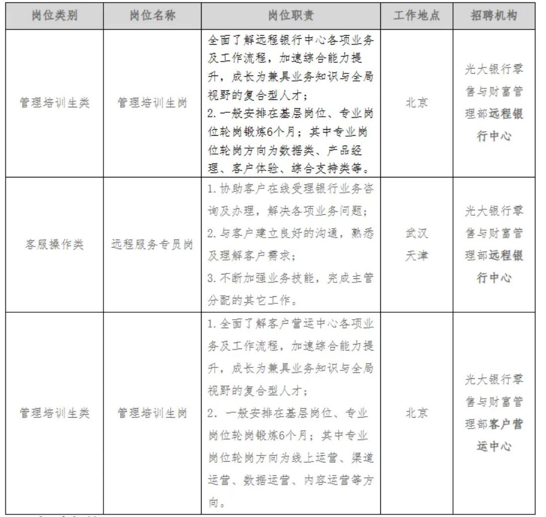 中国光大银行零售与财富管理部远程银行中心及客户营运中心2026年校园招聘启事