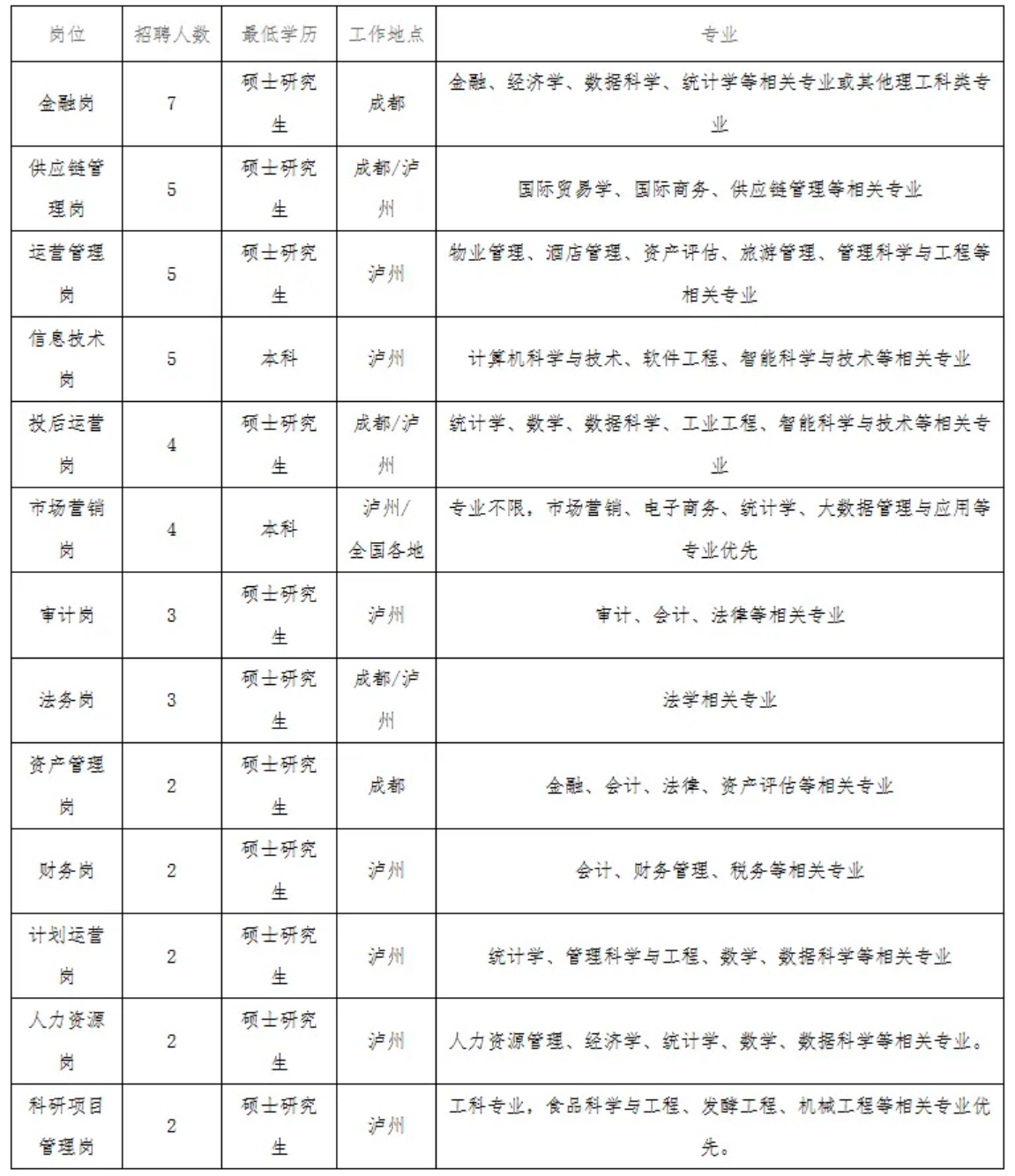 认同泸州老窖企业理念及价值观;具有扎实的专业知识和优秀的学习能力;诚信正直,开朗阳光,追求卓越,自驱力强,具有良好的沟通协调能力和分析解决问题能力。