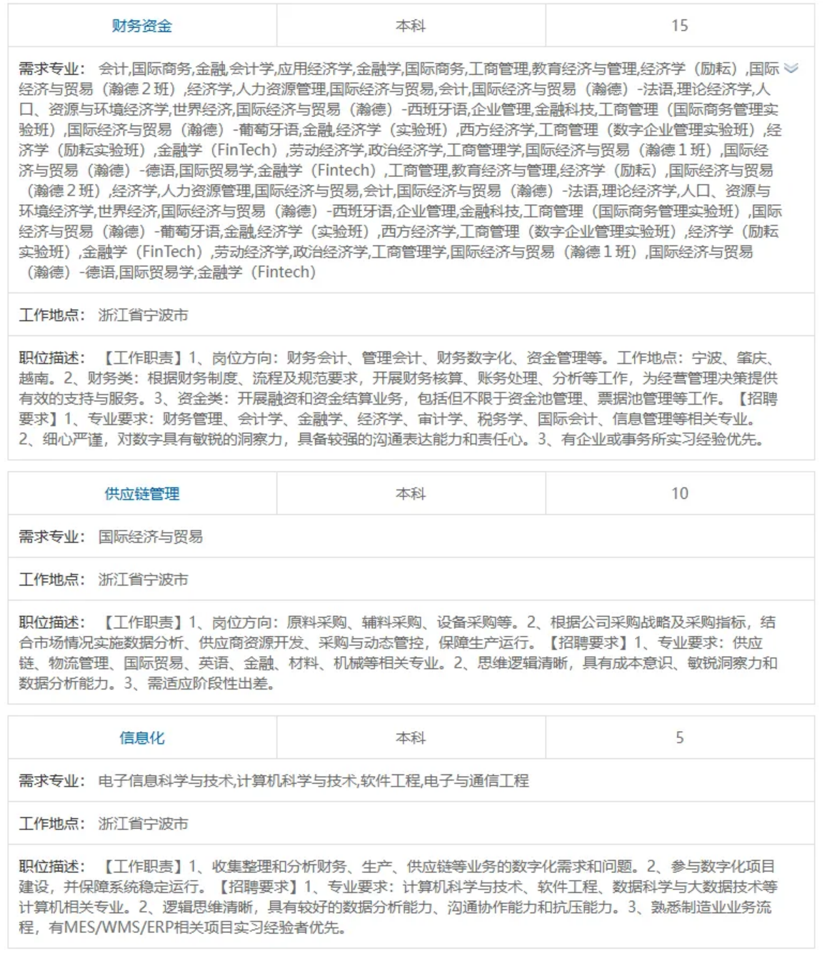 注:管理培训生岗,要求硕士研究生及以上学历。