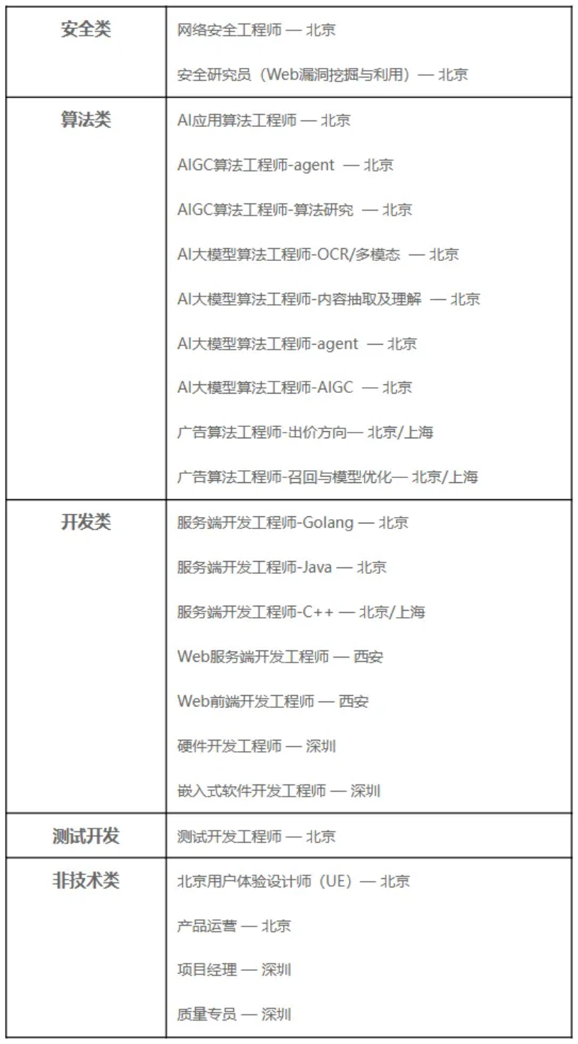 以上岗位均为校招生,提供专业和管理双职业发展通道,匹配完善的大学生培养方案。