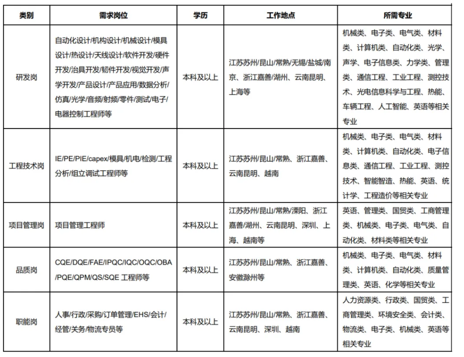 1.需求专业:电气类、材料科学与工程类、机械工程类、化工类、人工智能与数据科学类、英语类、物理类、电子类、物流类、工业工程类。