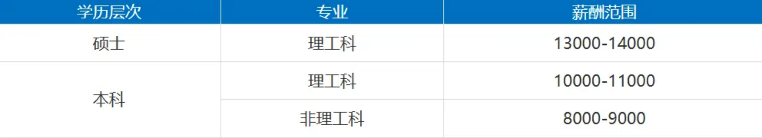 6.薪资待遇(税前综合):本科:13000-16000元/月 硕士:16000-19000元/月