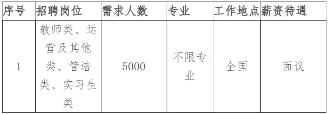 2.专业不限,可入职后考取教资;